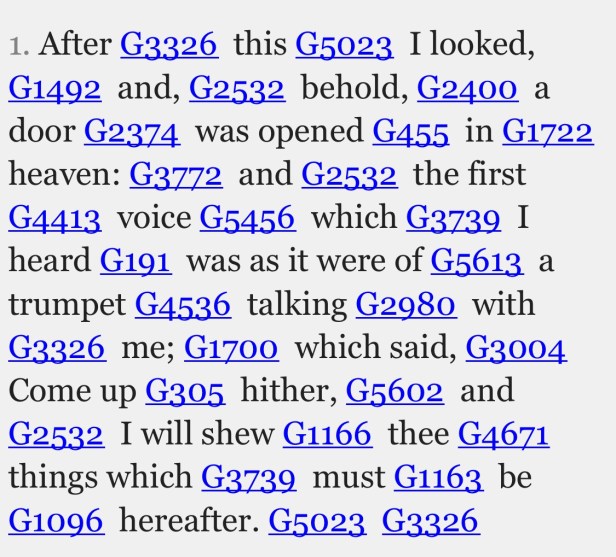 Notice that in this verse a voice is speaking to John. The voice is reverberating as a trumpet, or like a trumpet. What is not mentioned is the Resurrection, or the Lord descending with a Shout. Nor is there an actual trumpet blast accompanying the voice. All of these things are major ingredients of the catching up of the church. And they would proceed the Rapture if this were its timing on God’s calendar. Since these things are missing one must ask: is this verse being added to? The verse actually has a very clear meaning of its own that describes what is actually happening to John.