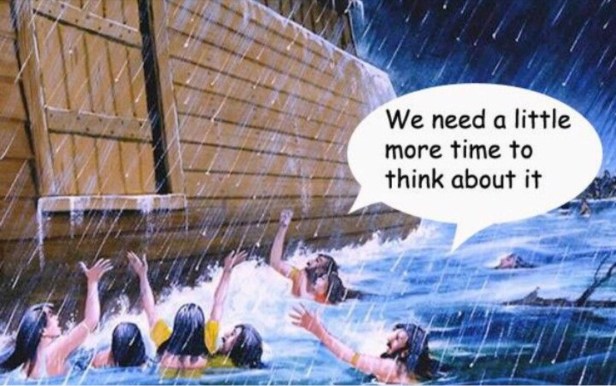 And as it was in the days of Noe, so shall it be also in the days of the Son of man. They did eat, they drank, they married wives, they were given in marriage, until the day that Noah entered into the ark, and the flood came, and destroyed them all.