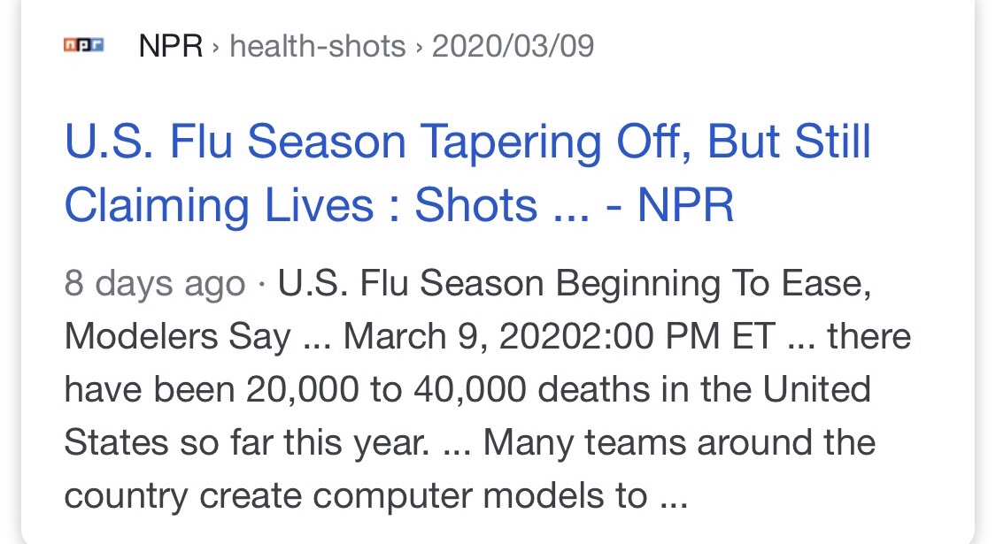 So let me make some observations. Why is this virus being hyped as it is? The only people who are dying from this virus are the same ones who are dying from the normal flu. The only differences are that (1) there is no vaccine yet for this virus. And (2) there is about a 10 times higher death rate from this virus probably because there is no vaccine. So it is understood that people with compromised immune systems should want to self quarantine, and people with friends and family members in that category should not want to expose those folks through close contact when they are quarantined.