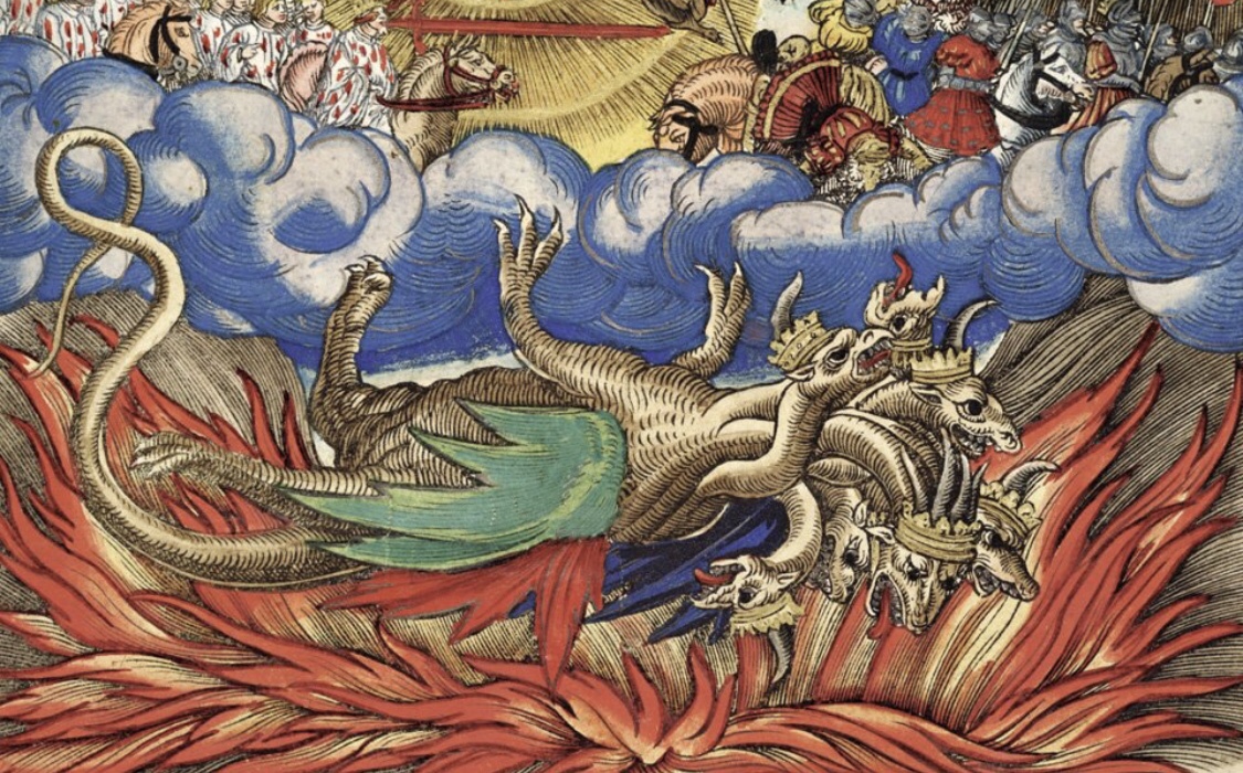 Daniel 7:11 “Then I kept looking because of the sound of the boastful words which the horn was speaking; I kept looking until the beast was slain, and its body was destroyed and given to the burning fire. (NASB)