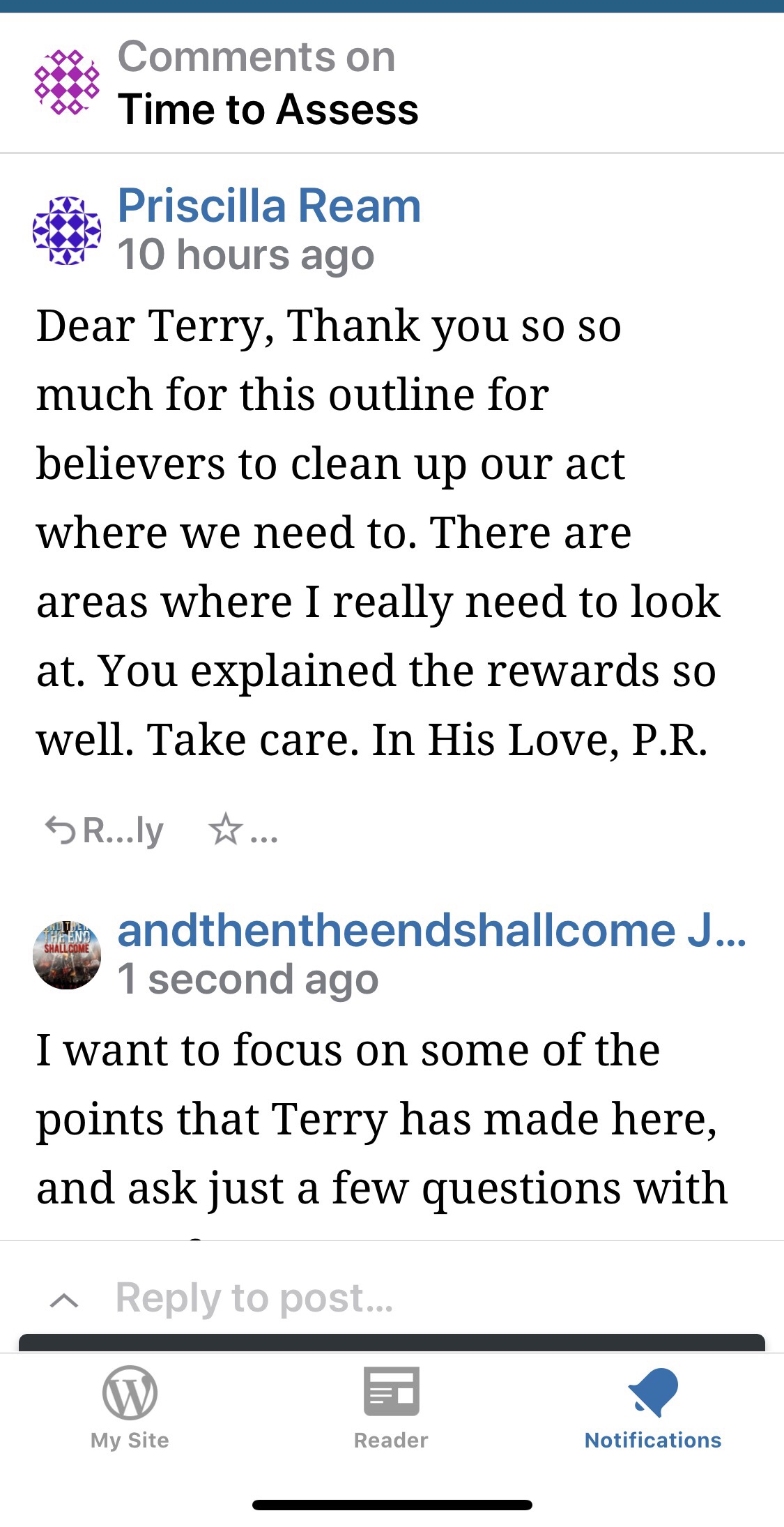 When I began on WordPress in 2017, I was posting as a Rapture blog, and my posts were about scripture’s teaching based on my book, which concludes that scripture is full of post-Trib. Information. I was also reading other Rapture blogs such as Terry’s at that time. I could not help but comment what scripture stated concerning some of his points where he seemed to ignore these certain scriptures when dealing with his subject.