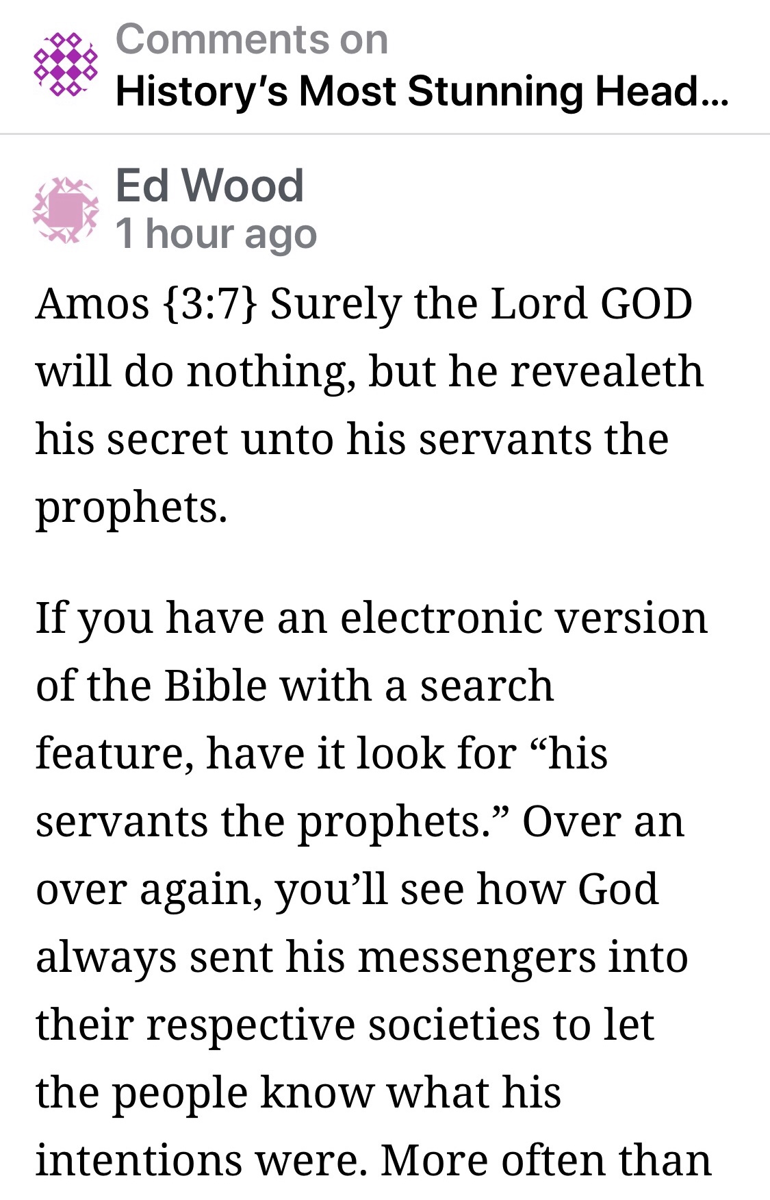 This was a comment given concerning a pre-Trib rapture message by Terry James entitled, “History’s Most Stunning Headline”. Ed Woods is a contributor and author of Books offered by Olive Tree ministries.