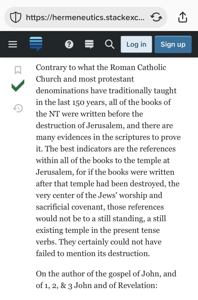 Both the a-millennial, and post-millennial theologians want us to accept that the Revelation of John is already fulfilled in 70 AD, except that it could not have been.