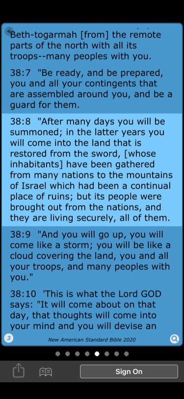 There is a particular passage of Scripture which gives specifics concerning the timing of Israel’s deliverance by God. That time as outlined in Ez. 37-38, aligns with other passages to give us a picture of what’s coming. Remember Paul tells us in 1 Thess. 5, that we believers will not be uninformed in a state of darkness as is the world itself concerning these things.