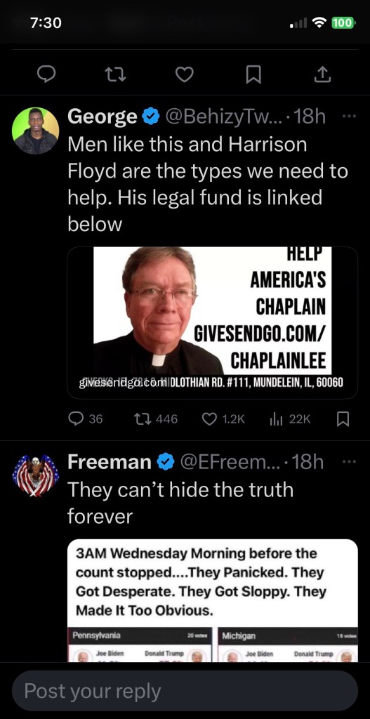 Here is someone who needs our help with defense costs: you might consider a contribution. It’s time to save America. This evil Administration goes for a person’s wealth as they drag out prosecutions, which can deplete the funds of innocent men and women.