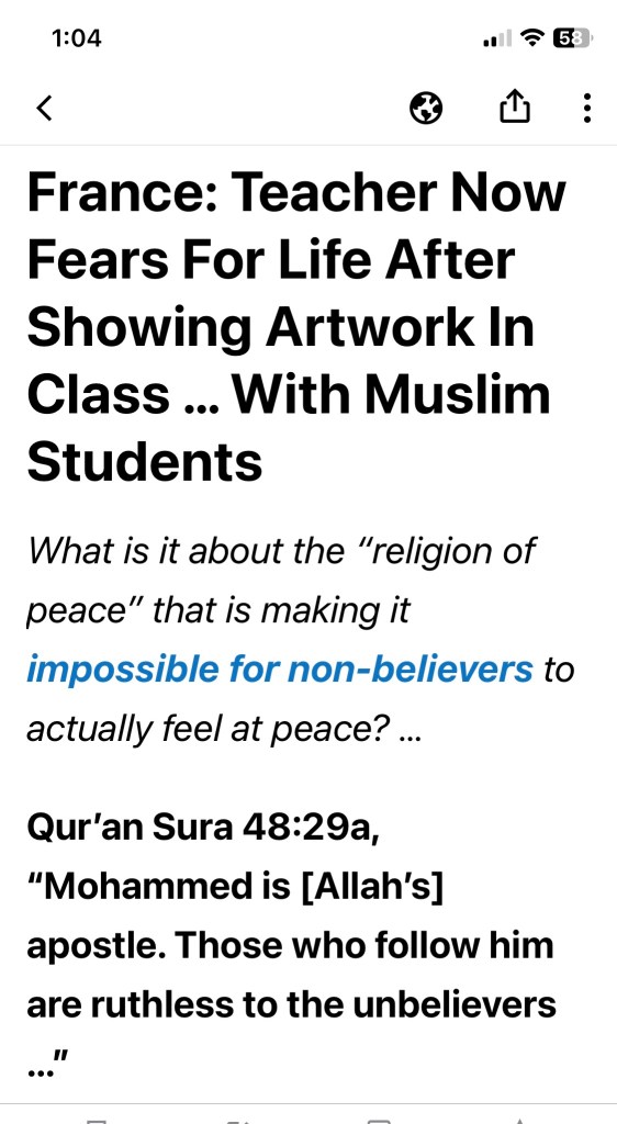 Qur’an Sura 8:12b, “… terrorize and behead those who believe in scriptures other than the Qur’an.”