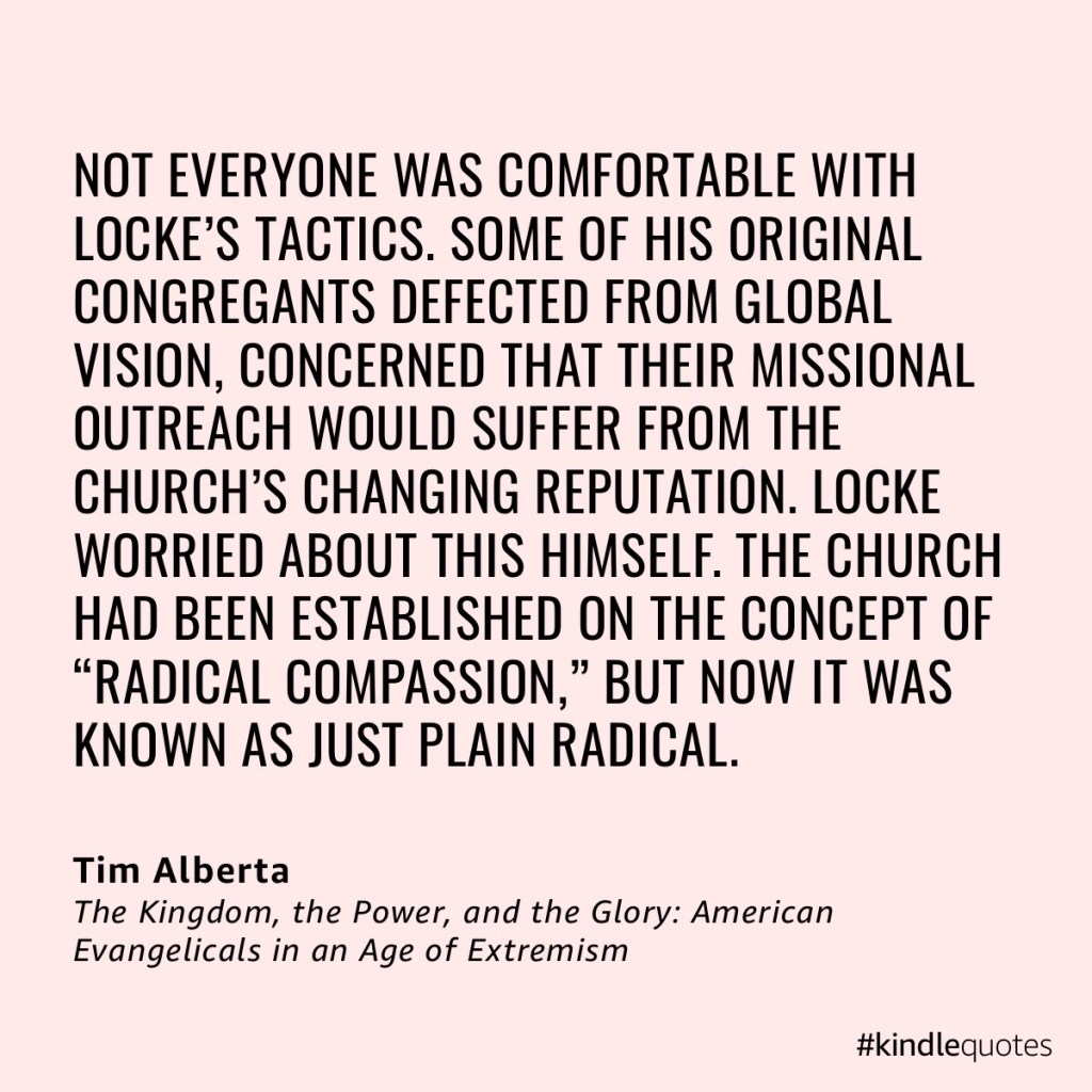 Tim is offended because Greg Lockes church exists within evangelical circles and because much of the evangelical movement supports Donald Trump, mainly because he also has risen to political fame in ways also not so well liked by the Staid and mostly do nothing but go along RINO’s.