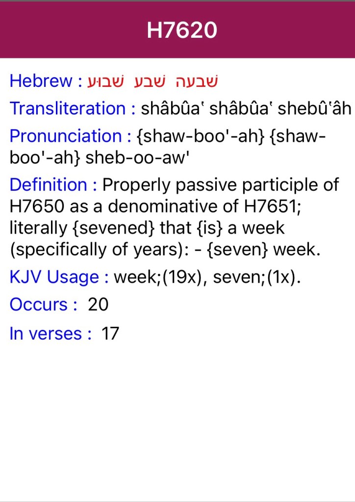 David Lurie, author of the Holocaust and Daniel’s 70th Week. has pointed out that the translation means a period of years equally divisible by seven. In light of that fact it has been speculated that the seventieth week can be any number of years which can be equally divided by seven. (Eg 49/7 = 7, so it is an even number answer without a fraction in that answer. The question is can 167 BC be the center of Israel’s long history thus fulfilling Daniel’s 70’th week itself. The answer: not likely.