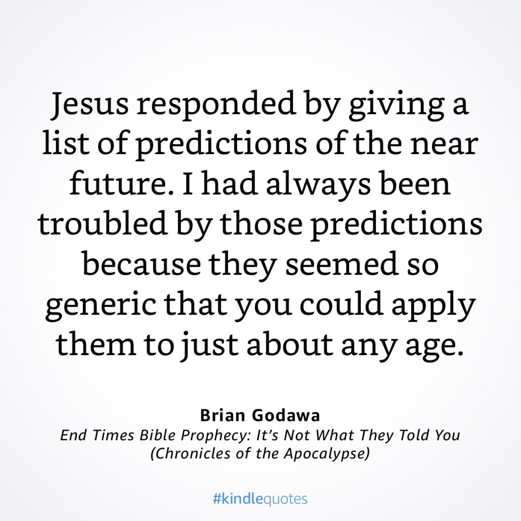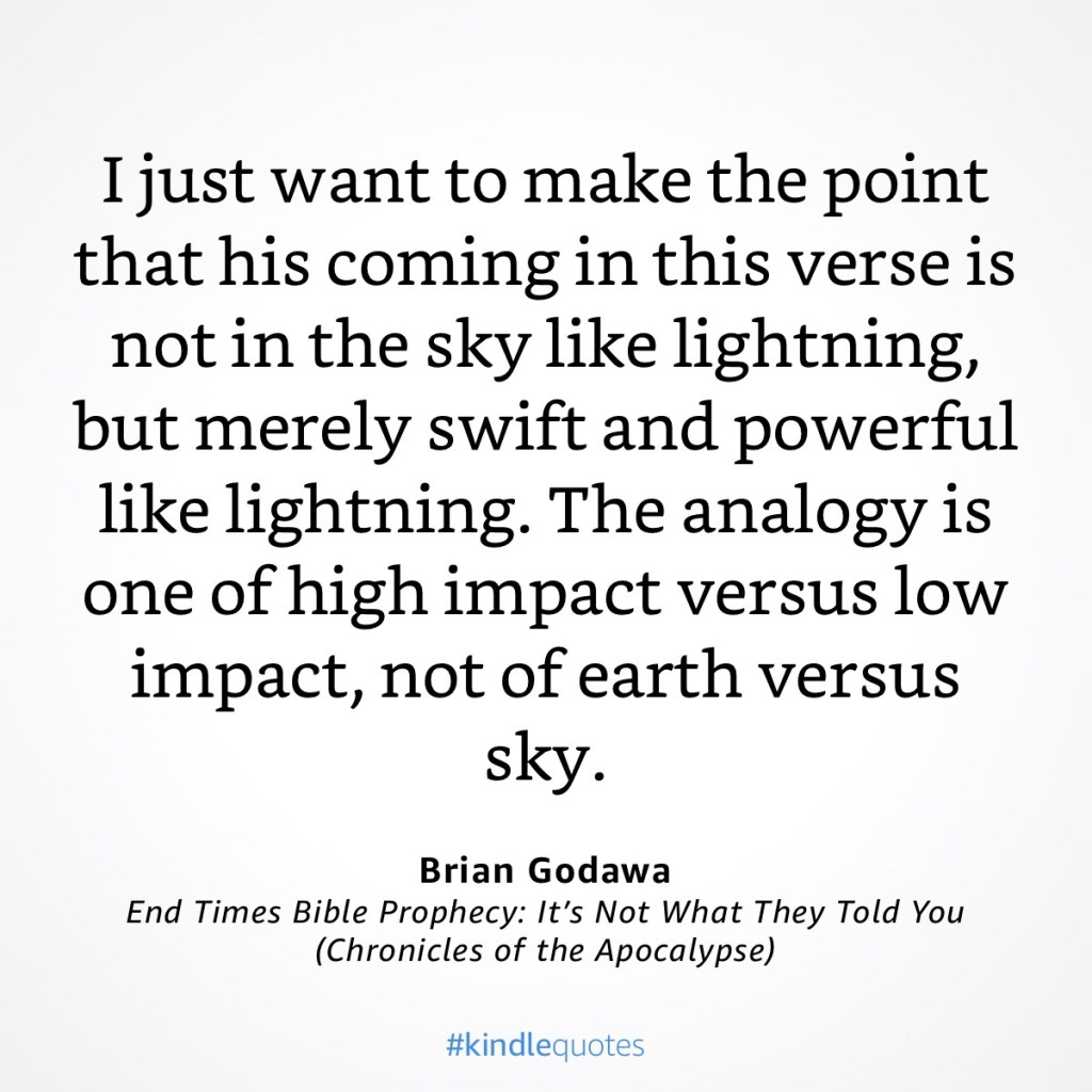 In the same chapter where Godawa ends the age after the 70 AD distruction, he then graduates to the Lords coming spoken of in Matthew Chapter 24 where he says this: