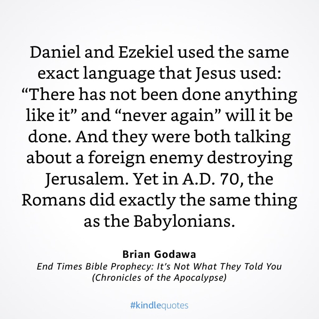 He offers no other choice, but his own. Yet there is another choice. Does he really know that “exactly the same thing was done in 70 AD, that was done in Daniel’s day? Would God agree that it was exactly the same? Did Rome cart the Jews off into exile following 70 AD, when, in fact, they were already in Rome’s grasp prior to 70 AD? Israel’s dispersion was not in 70 AD, into the control of “a Nation” but was sent into a dispersion throughout the entire world, with a promise to be regathered in the latter days (Deut. 30:1-8).