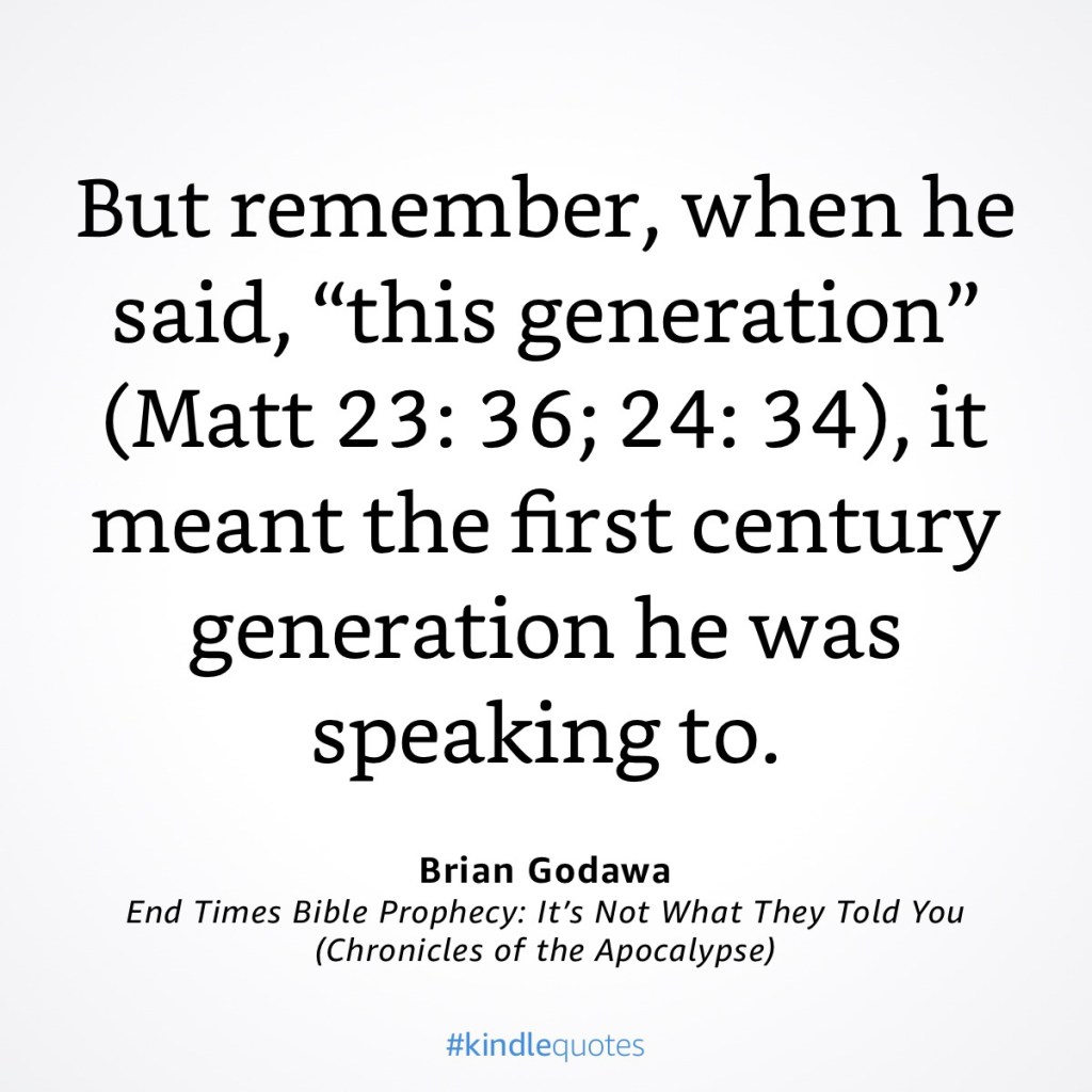 NEXT: Godawa will attempt to tell us that these words were penned for the Apostles themselves and therefore they must be the generation to see this end of the O. T. Age and the coming of Jesus.