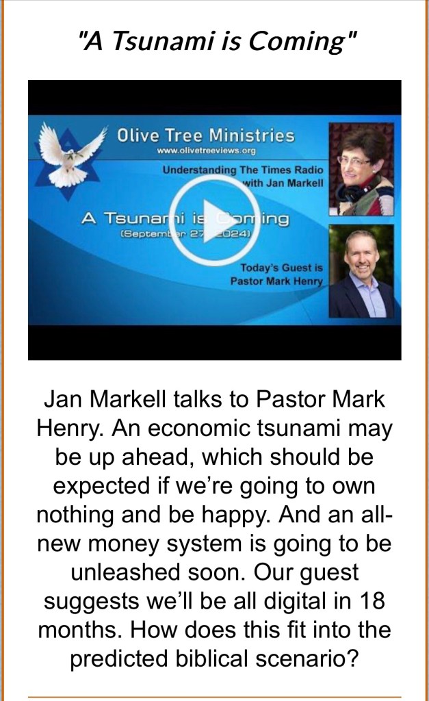 A Post-Trib rapture would, of course, require some very different catalyst or even a combination of events leading to the Chaos. I have in the past stated that a World economic collapse would lead to the Tribulation. Jan Markell is now presenting such an economic collapse.