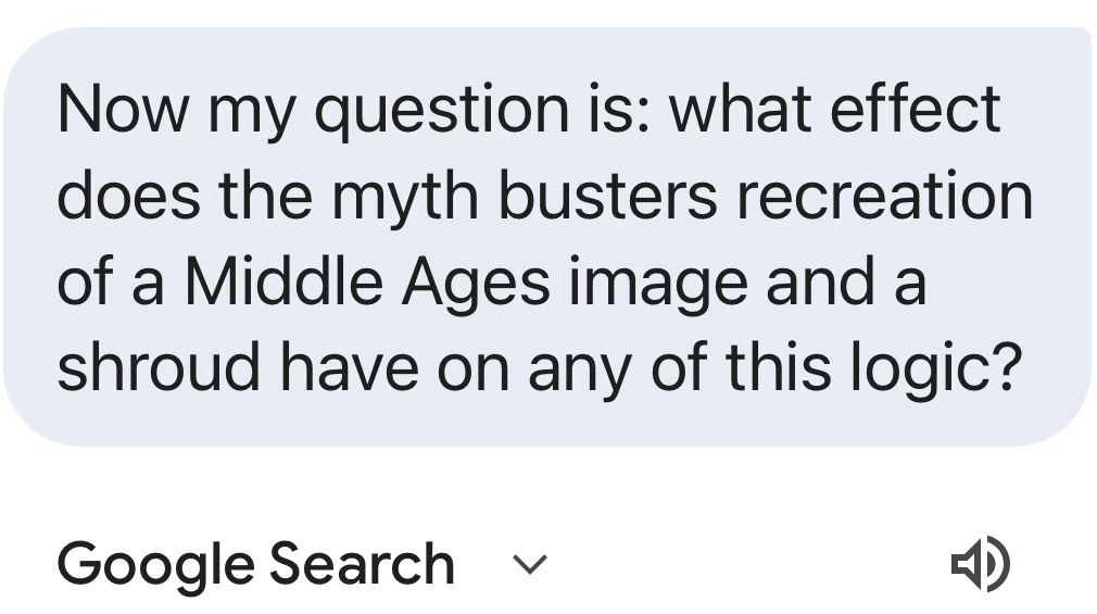 From a logical standpoint, the MythBusters’ experiment is an interesting demonstration of how an image could have been created in the Middle Ages. However, it’s not a valid argument against the Shroud’s authenticity because it failed to replicate the Shroud’s most mysterious and scientifically significant properties. The logical argument for the Shroud’s authenticity is built on a convergence of multiple, independent lines of evidence (history, new dating methods, and forensic analysis), and the MythBusters’ experiment only addresses a small piece of that puzzle.