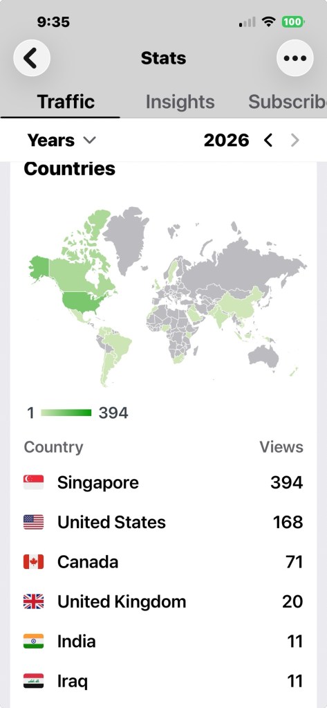 Now as you can see the following display shows that the outreach to Singapore is thus far in 2026 far outperforming even the U.S. impact. It is almost in just 8 days what it was for Singapore in all of 2025 above. And for that period it was more than double the U.S. impact.