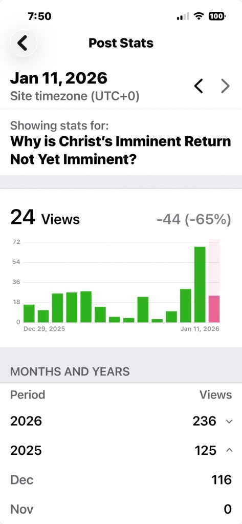 This is the message I referenced above: is God doing something with this message now that was written in 2018? It had 125 reads in 2025 most of those in December, and 236 already in 2026. This amazes me because I have had nothing to do with those happenings.