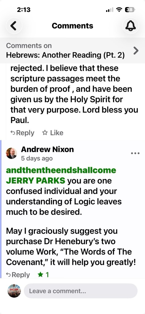 “PS, please tell me where the Bible has been improperly translated surrounding the covenants within the Scriptures. I have communicated directly with Dr Henebury, and his logic is based on his buying into Dispensational theology (even though he is Reluctant concerning it?). For instance where Paul says in 1Cor 15 that as in one man Adam all die there is one Man Christ, by whom must come the resurrection, which is obviously Paul’s blessed hope, since he would not see Rapture [himself]. Dr Henebury says this [this resurrection promise] does not include any one other than the Church [or bride], when logic tells us that being “in Christ”makes us one with the Church [or Bride], and [that] all of these tribulation saints who are saved according to what Paul tells us here [who if we understand logic as you must do], then cannot come to resurrection, [for] Paul says that there is no other way to resurrection; than to be in Christ, and then you will see resurrection. And logic [if we believe Paul] then tells us that if these tribulation Saints die in Christ, that according to Paul’s teaching they must be raised before there can be any Rapture. Logic will also tell us that if they are in Christ that they must also be in Christ’s Church that He continues to build until His coming. Where is this logic failing His teaching and Scriptures?” Edited for better understanding.